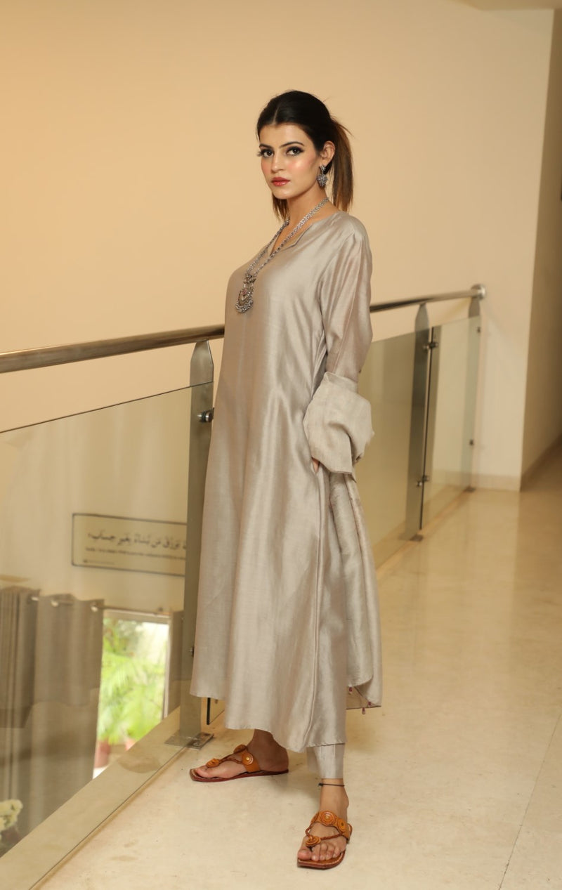 A-line Steel Grey Kurta Set