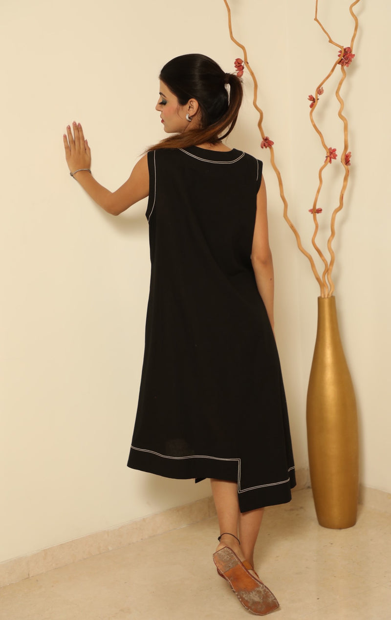 Asymmetric Hem Dress-Black