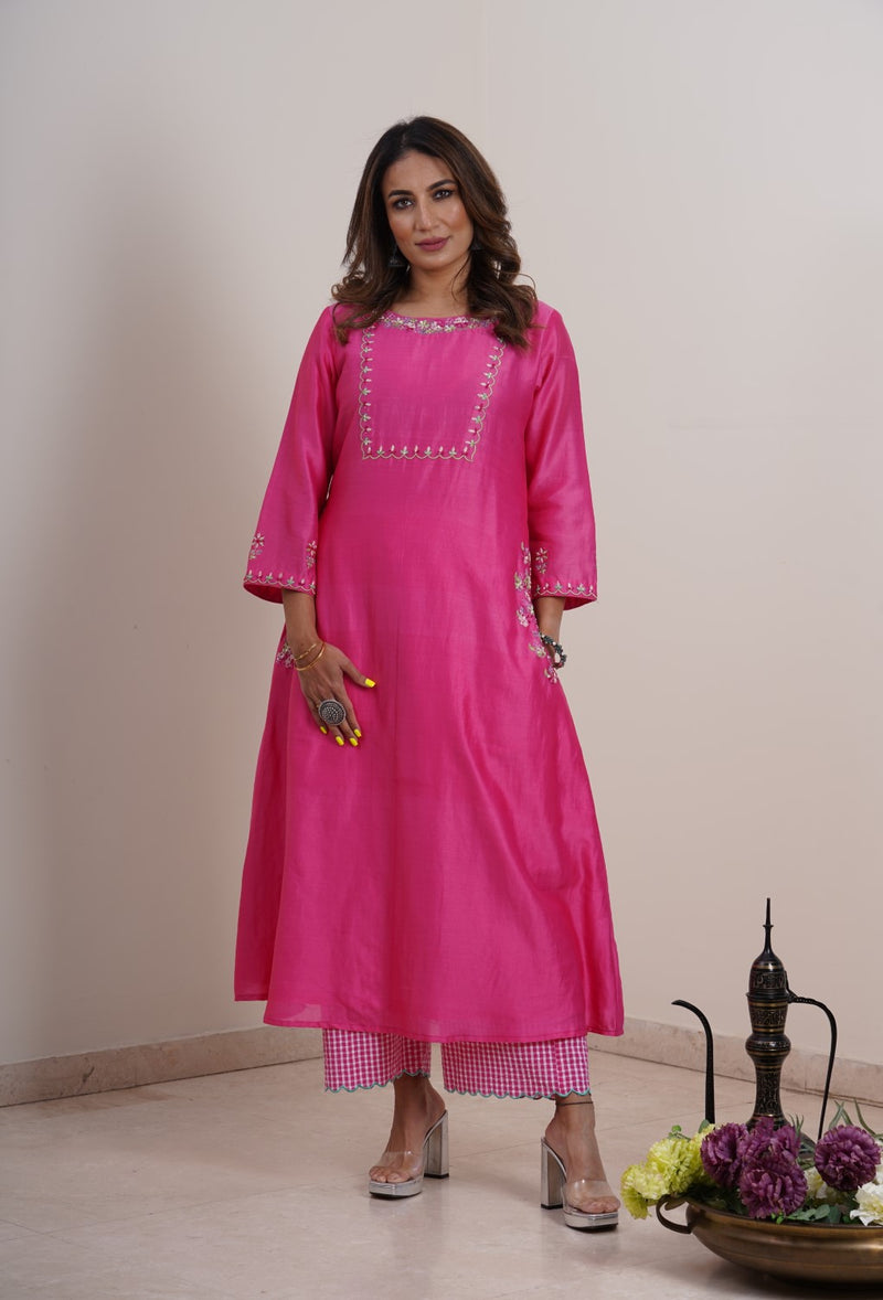 A-line Chanderi Silk Kurta Set