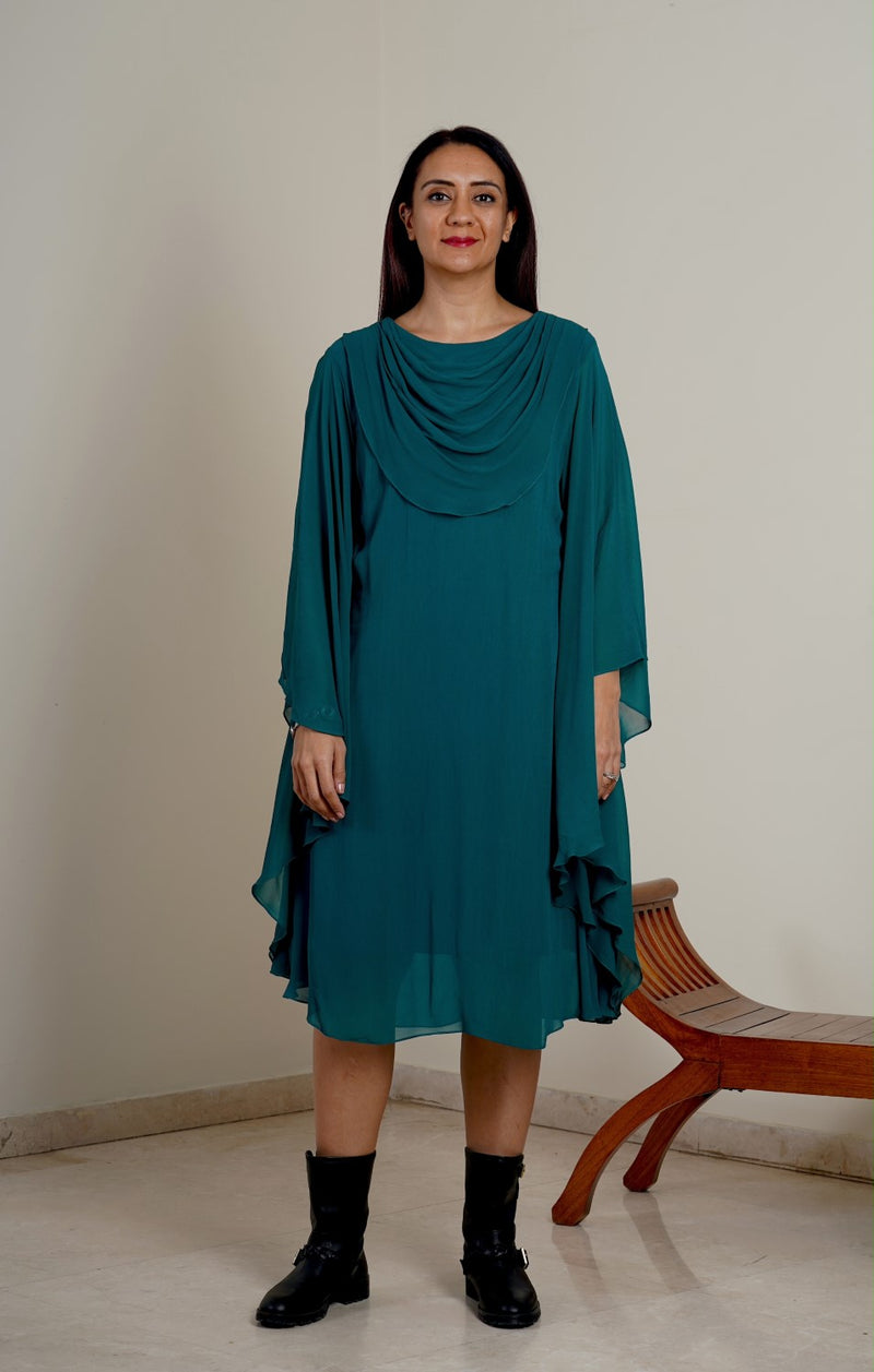 Batwings Dress-Teal Green