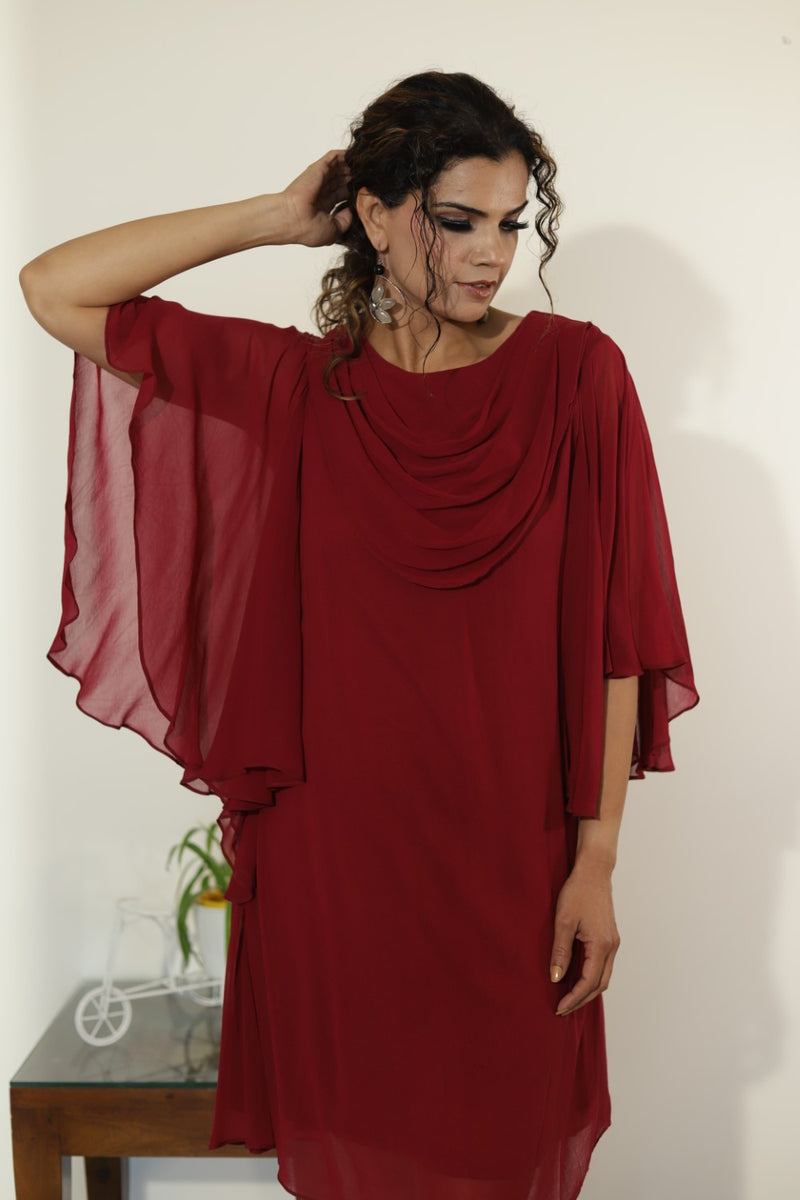 Batwings Dress-Maroon