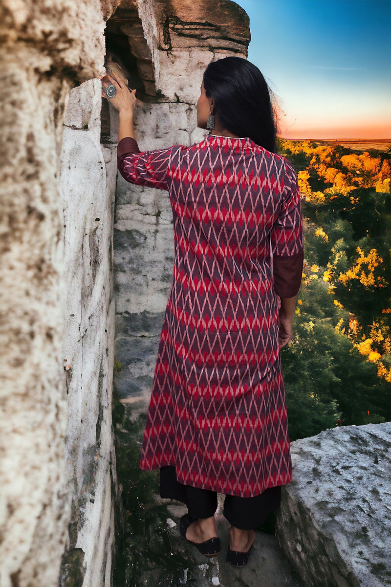 A-line button down Ikat Kurta