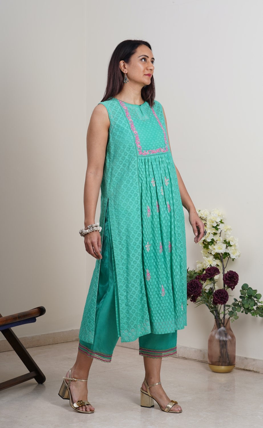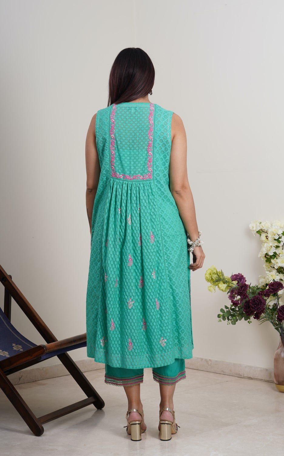 • Fine and dainty embroidery with dori and silk thread, highlighted with zari
