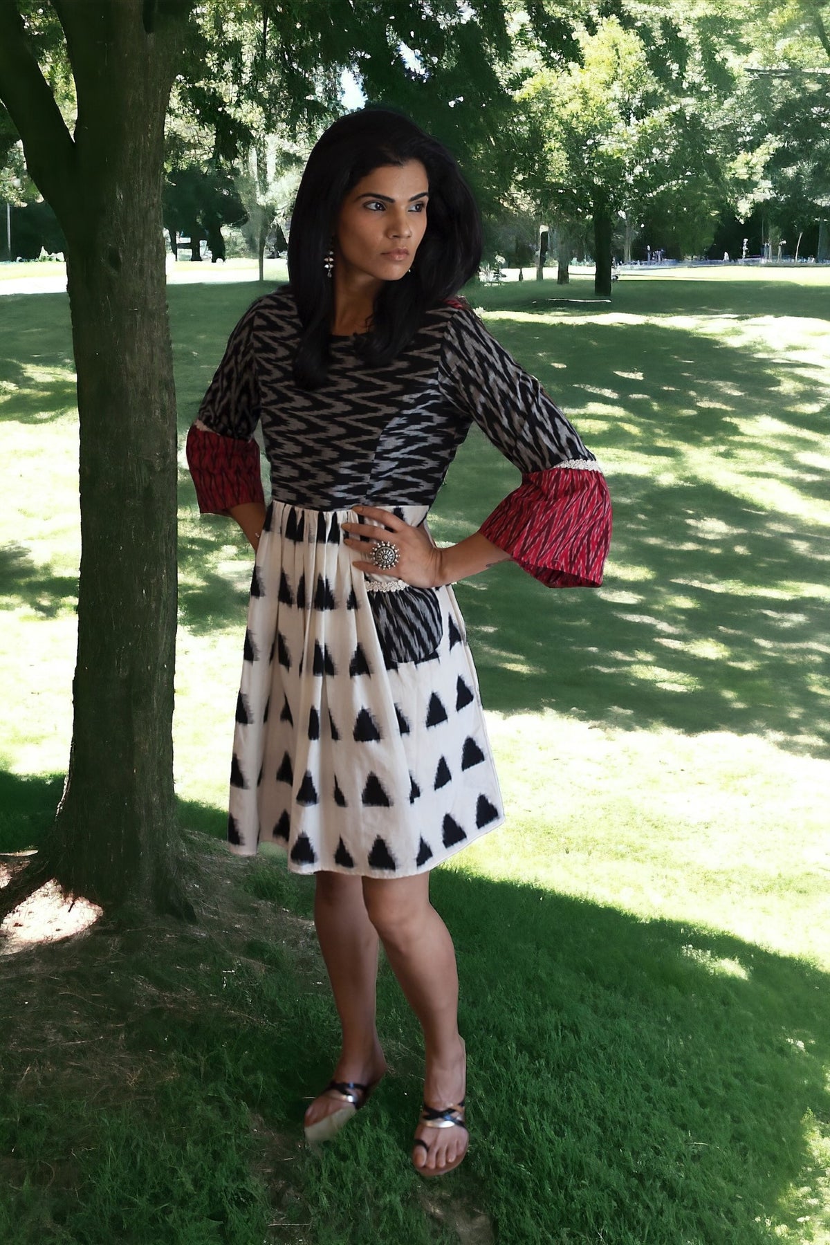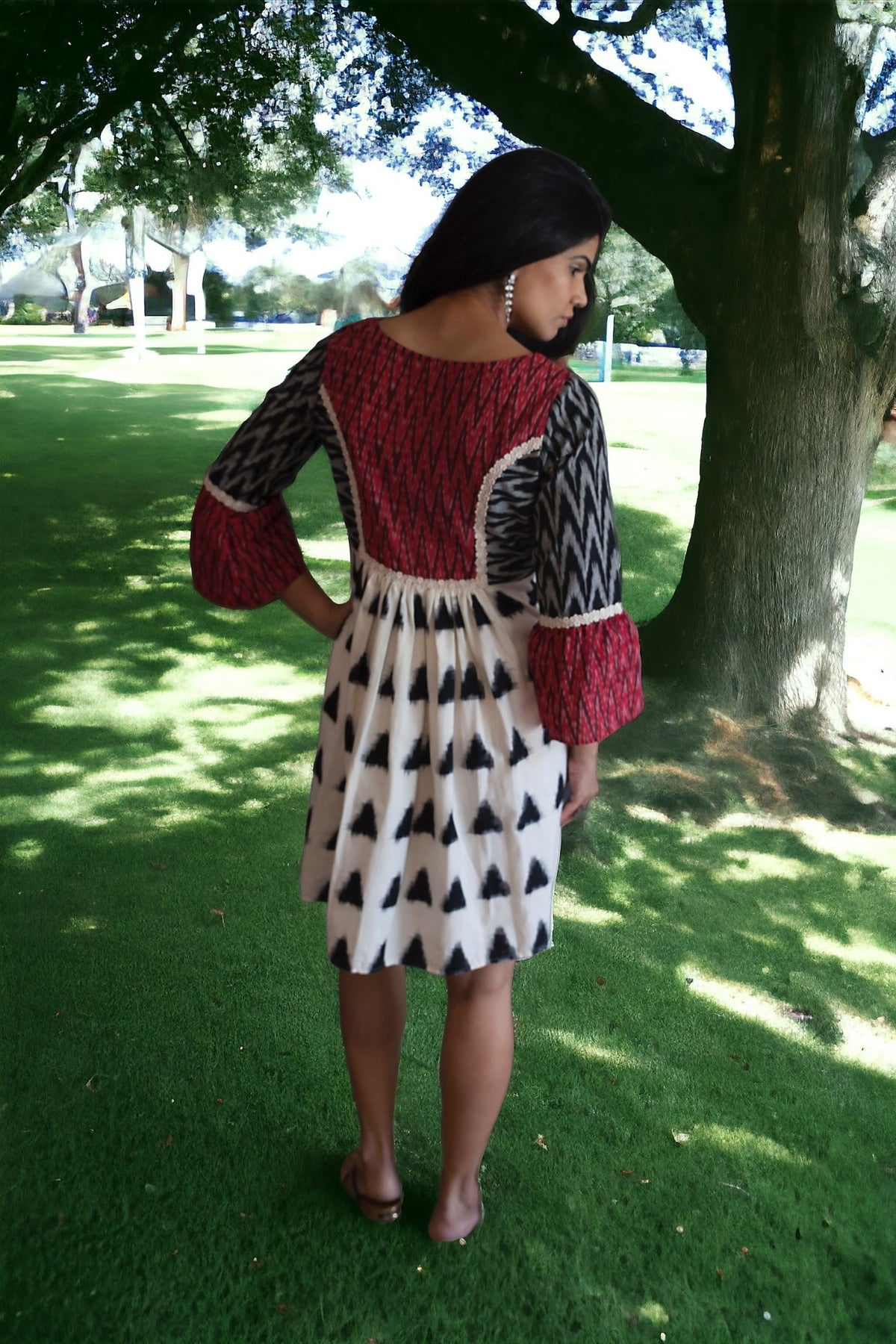 - 3/4th black & grey sleeves, finished with red mercerized Ikat and joint with lace
