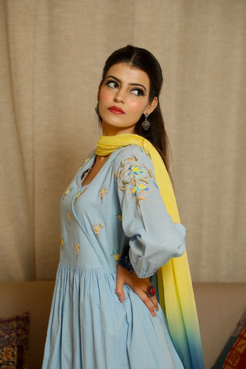 Harmony Hues Anarkali Set- Powder Blue