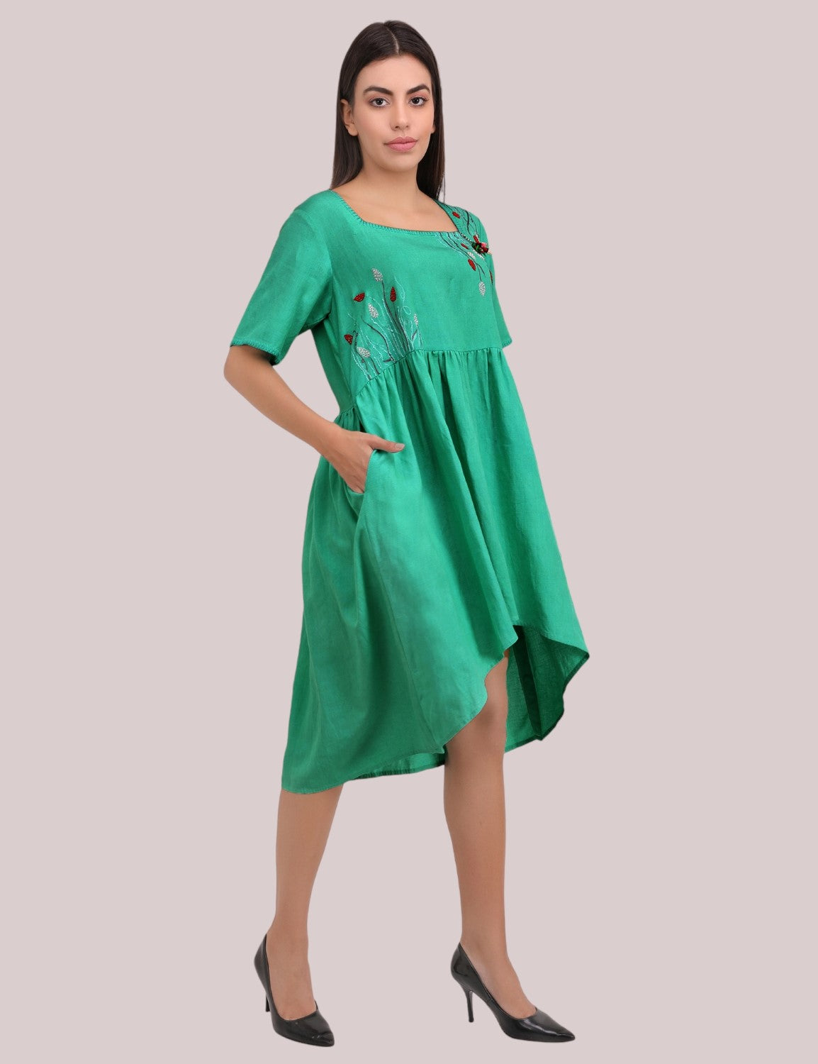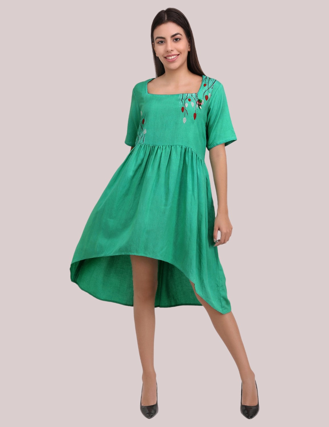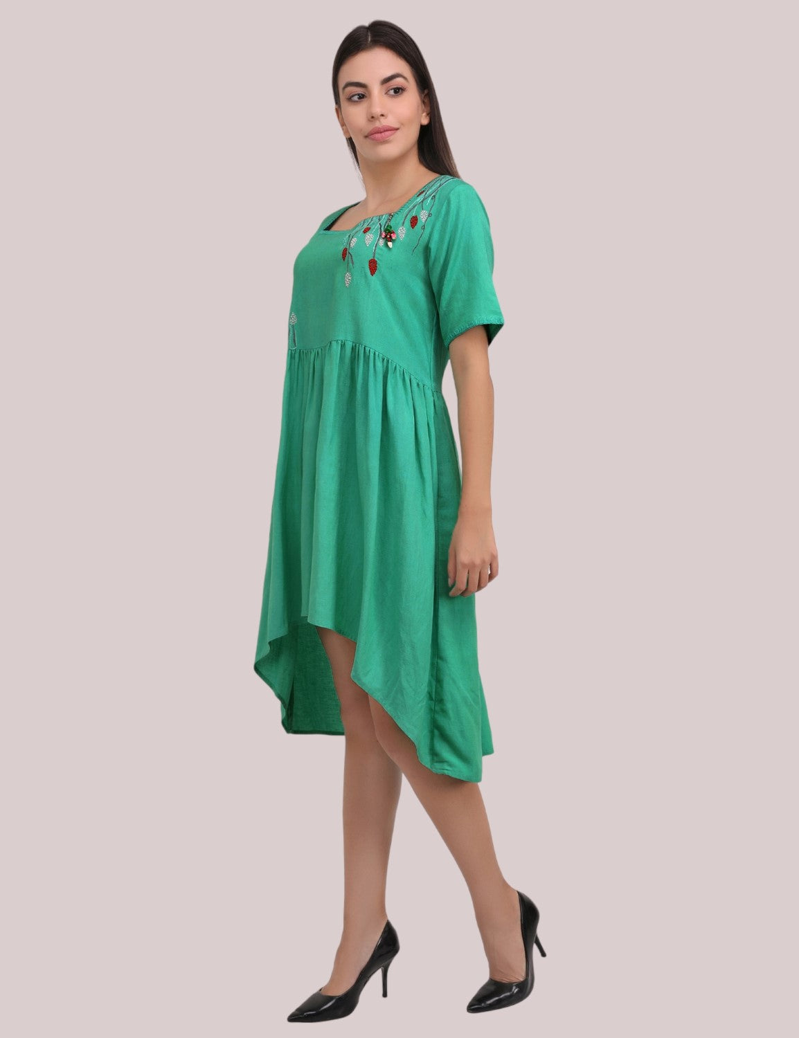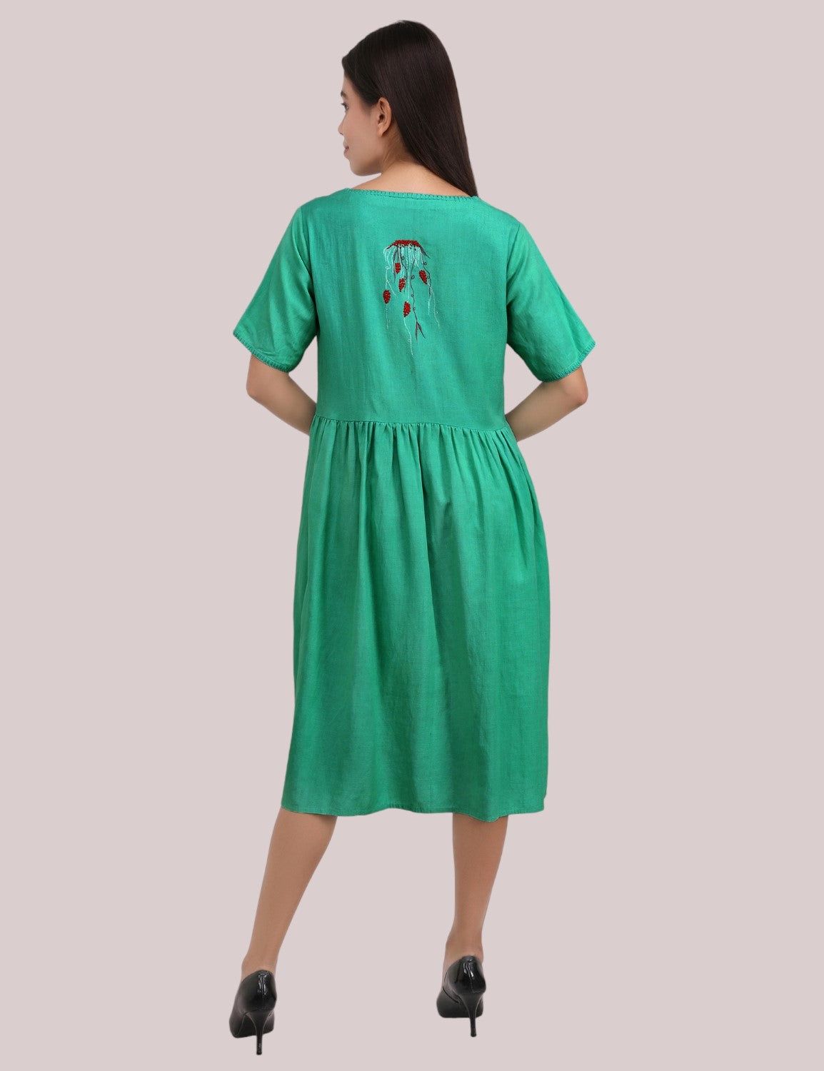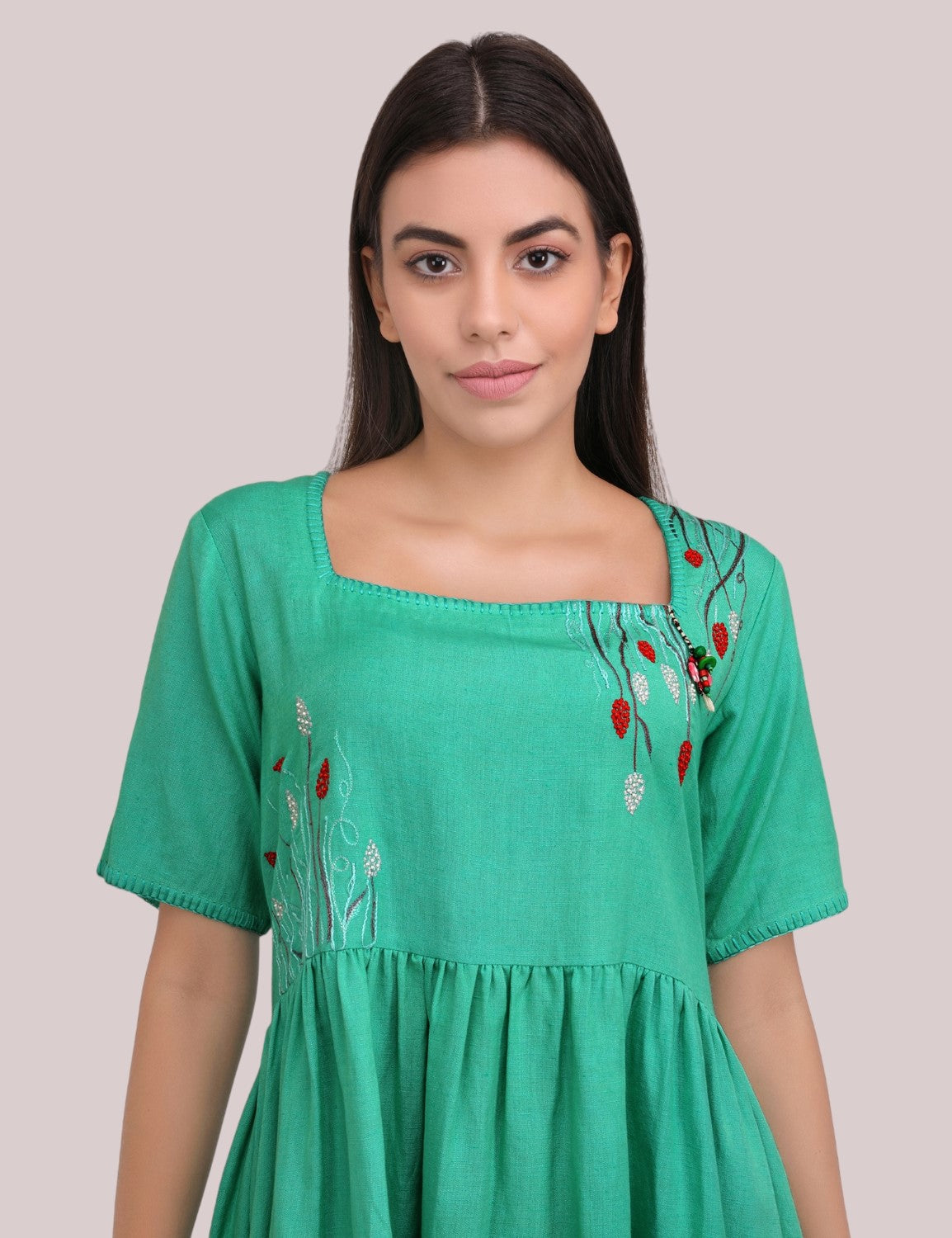 - Fine embroidery at the front and back yoke, highlighted with beads