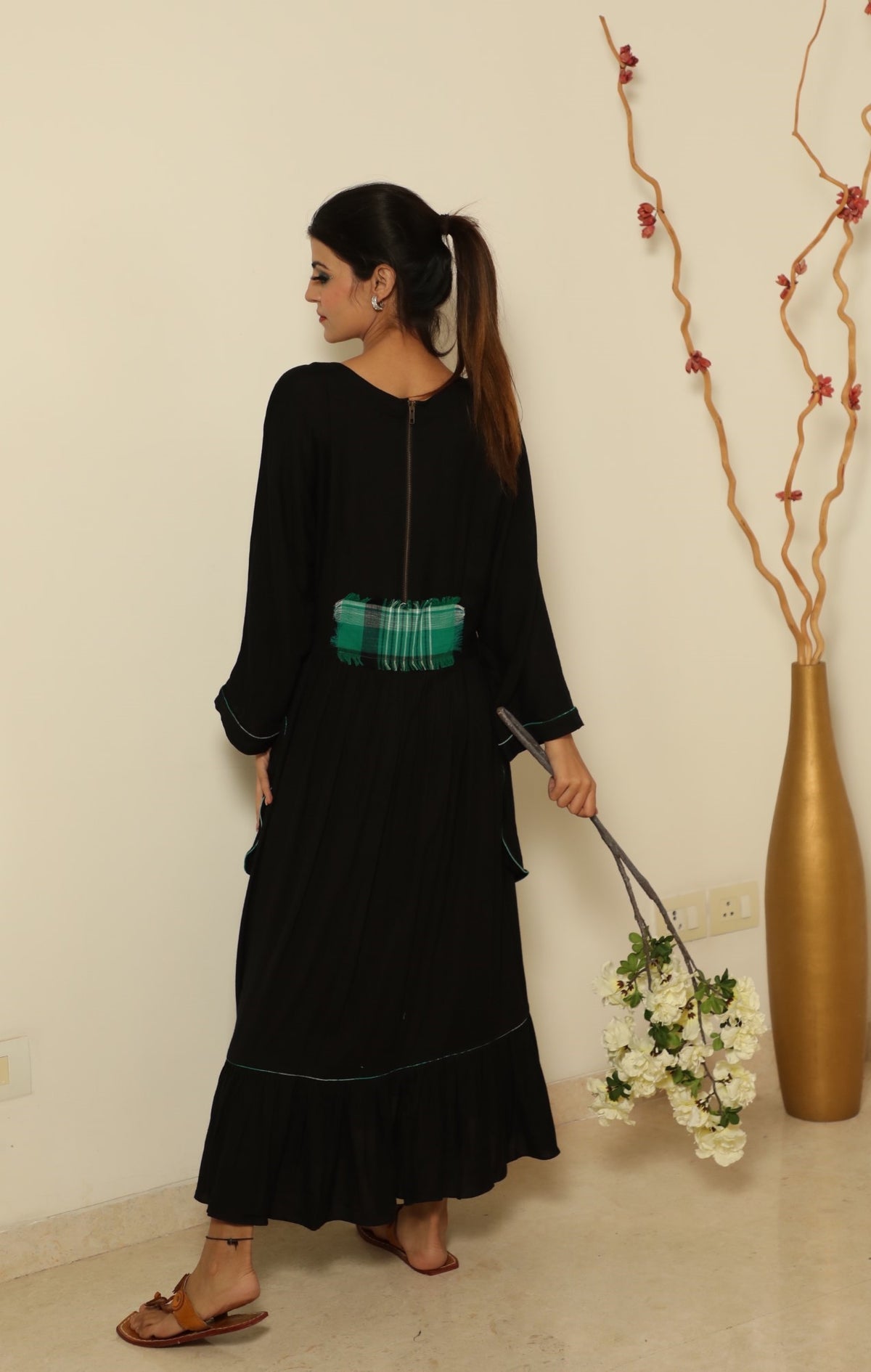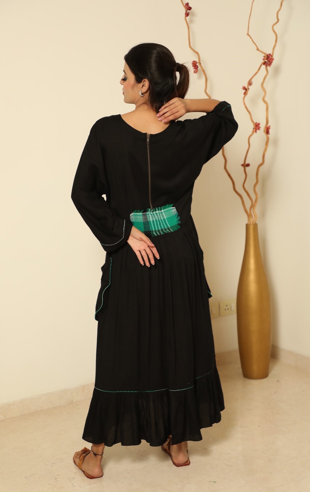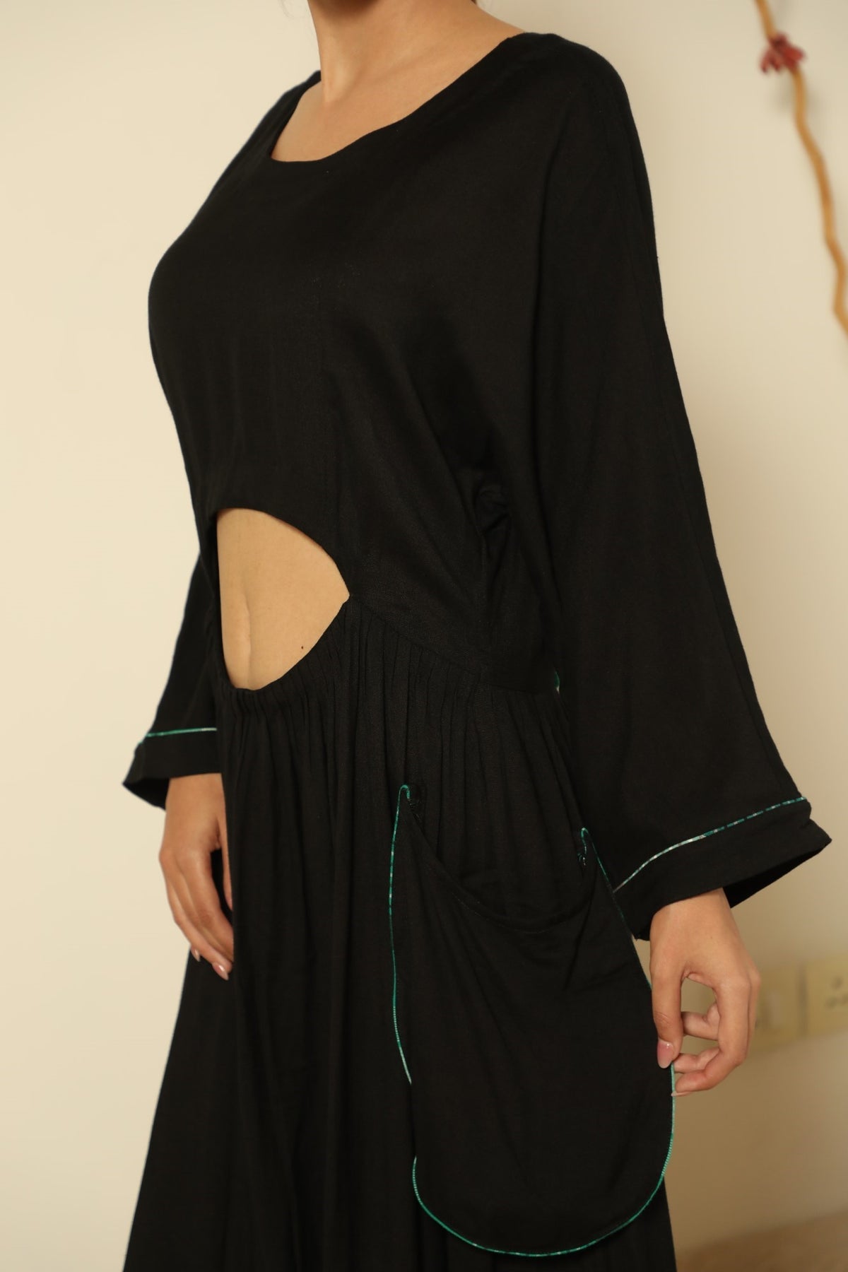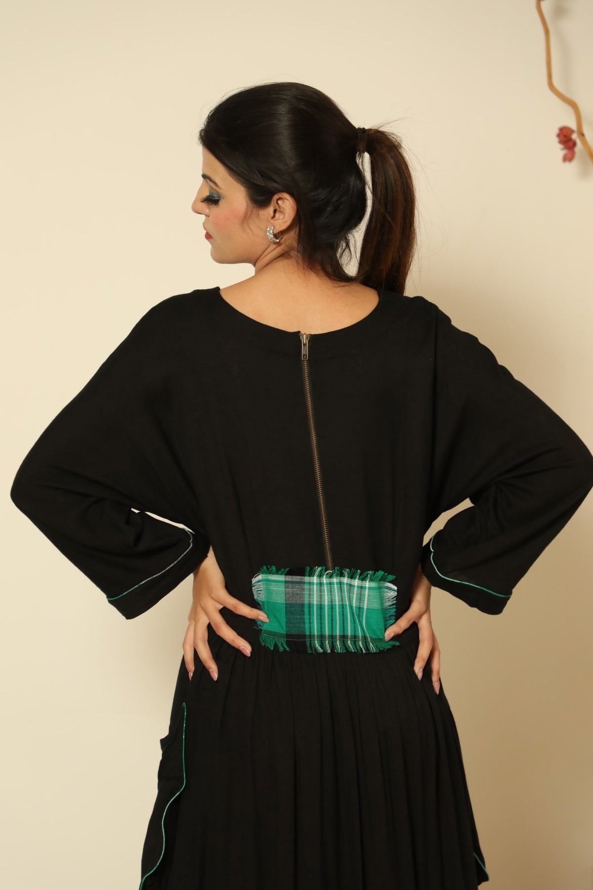 Dive into the captivating world of bohemian allure with this enchanting cut-out dress, boasting a chic high-low hem and convenient back zipper. Tailored for the free-spirited fashionista, its Dolman sleeves, relaxed silhouette, and generously-sized side pockets adorned with vibrant green check detailing radiate effortless charm. Crafted from breathable cotton linen fabric, this piece is perfect for a cozy date meeting, making it an essential addition to every stylish woman's wardrobe.