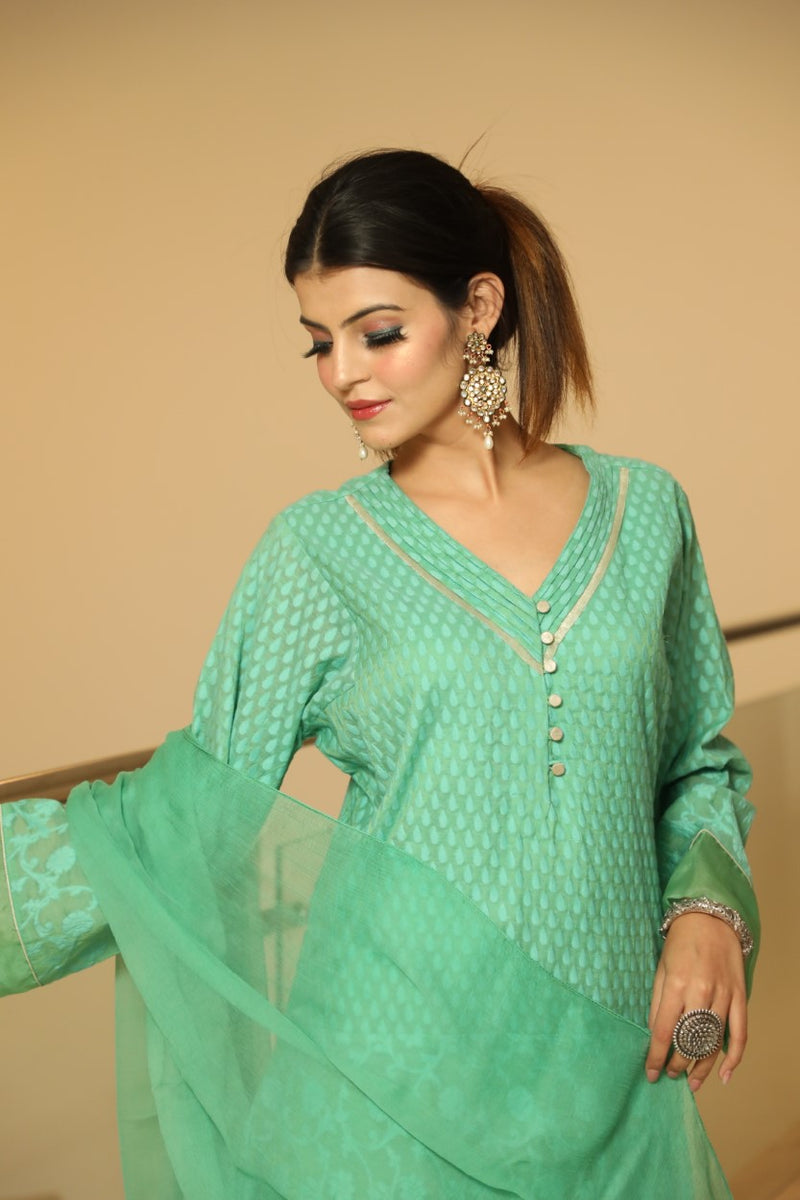 The Dual Harmony is a collection where timeless patterns meet unparalleled craftsmanship. This exquisite collection celebrates the perfect blend of classic checks, sophisticated stripes, finest Chanderi silk and premium cotton fabrics.