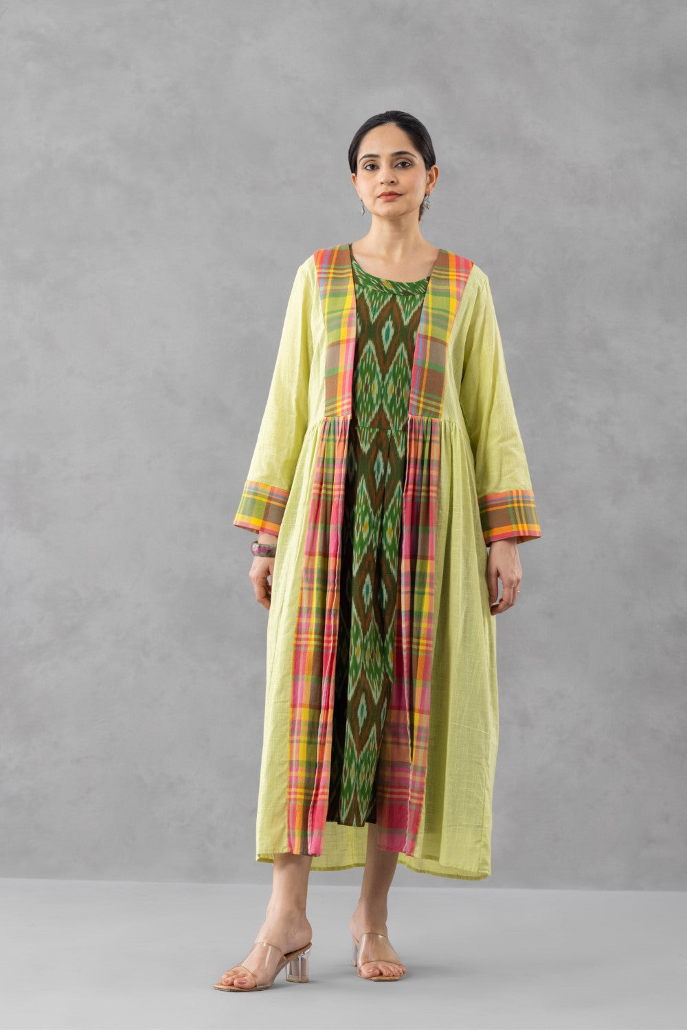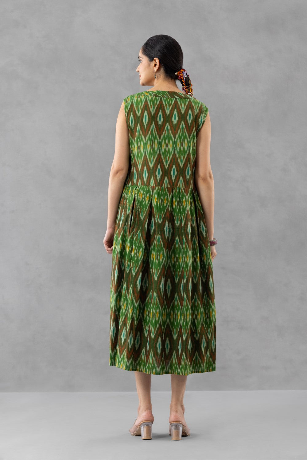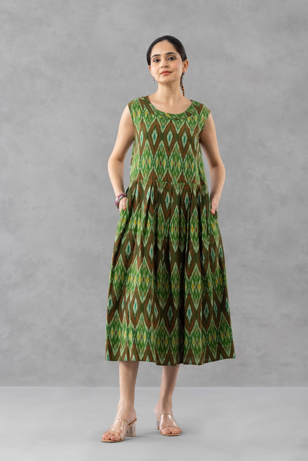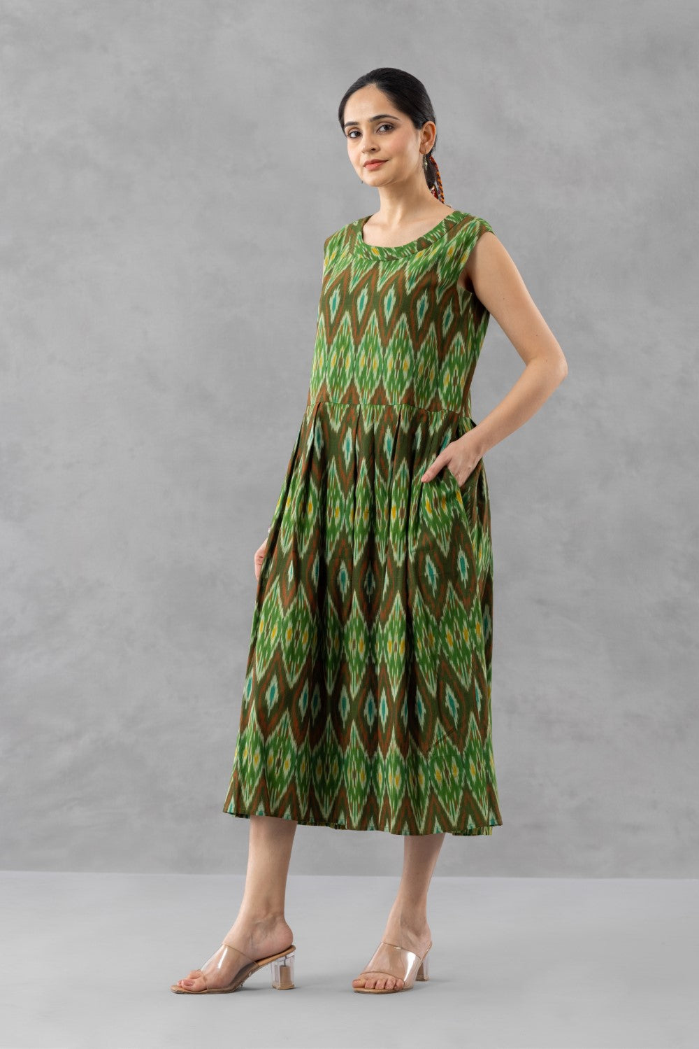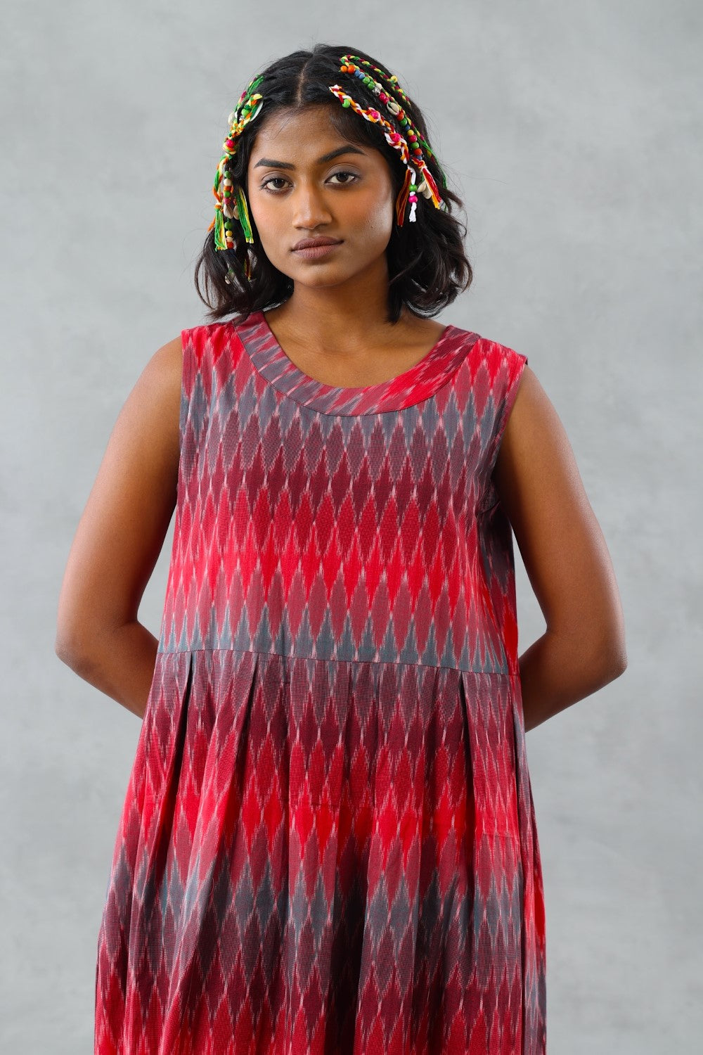 Effortless and timeless, the Ikat Ease Dress is crafted in handloom Ikat cotton and designed for all-day comfort. Featuring a clean round neckline and a sleeveless silhouette, the dress falls into soft box pleats that create gentle volume and movement.