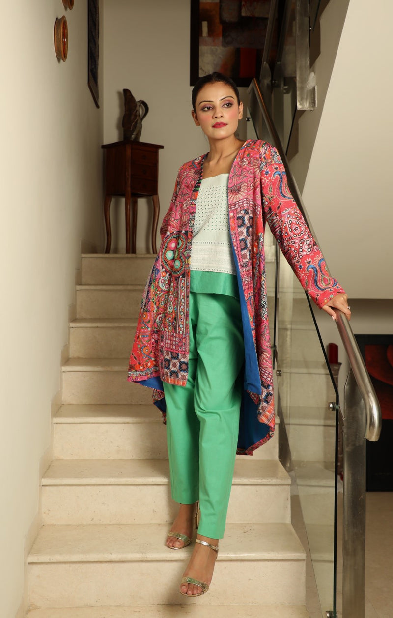The fabrics chosen for the “Jewel” collection are as carefully curated as the colours themselves. Cotton linen provides a breathable and comfortable feel, making it ideal for both casual and semi-formal occasions. Georgette, with its flowing and graceful drape, adds a touch of ethereal charm to the collection. The combination of these fabrics ensures that each piece not only looks exquisite but feels luxurious against the skin.