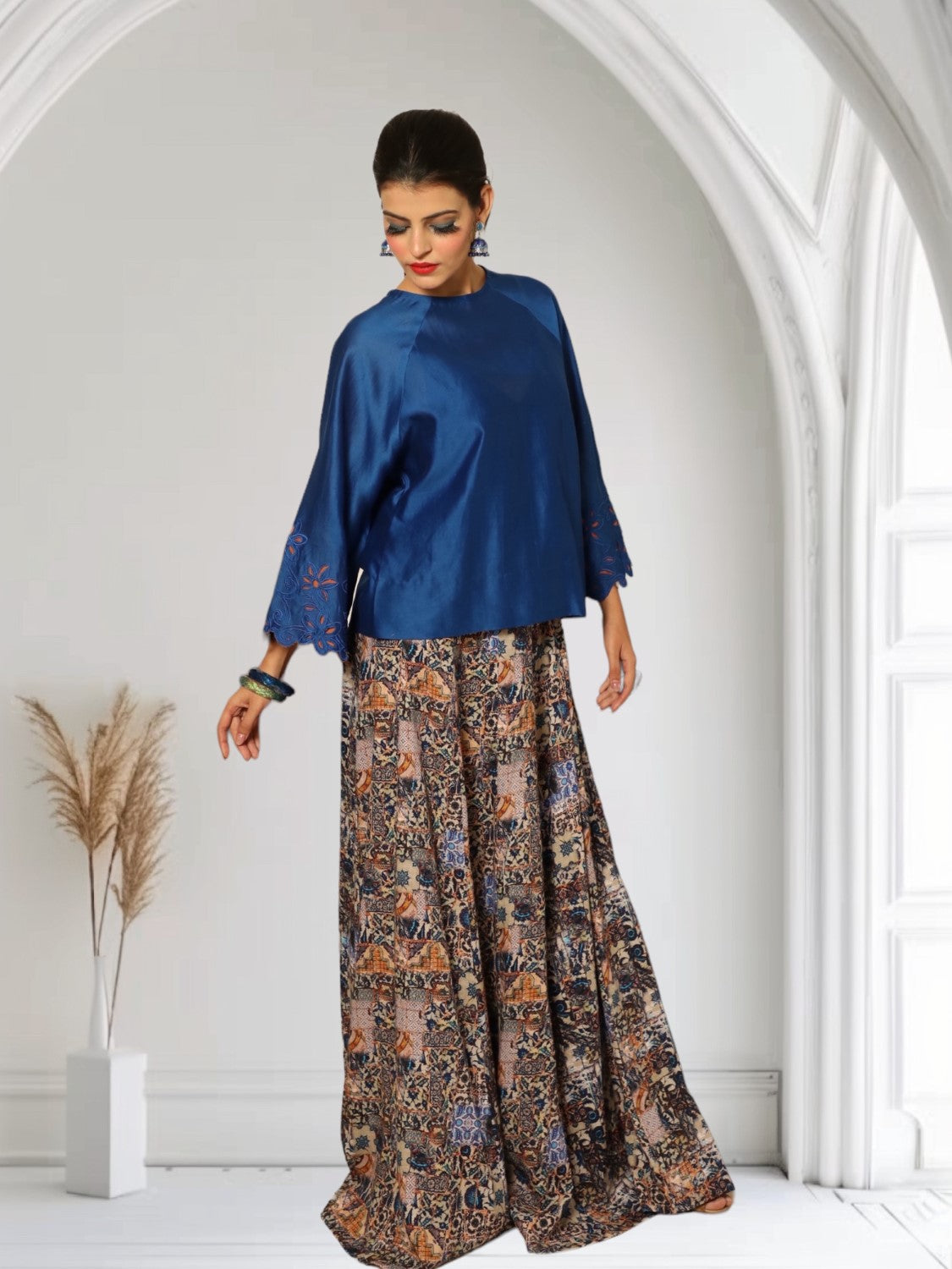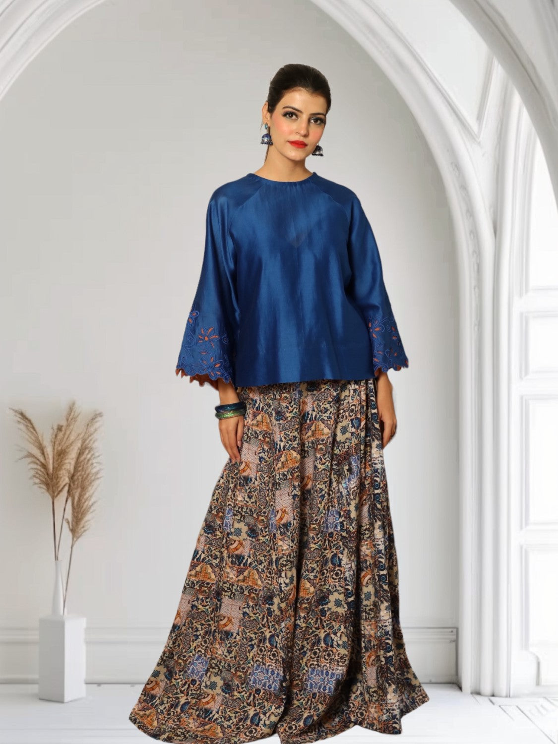 Our sophisticated long skirt, expertly fashioned from breathable cotton linen and adorned with elegant Mughal prints, is here.