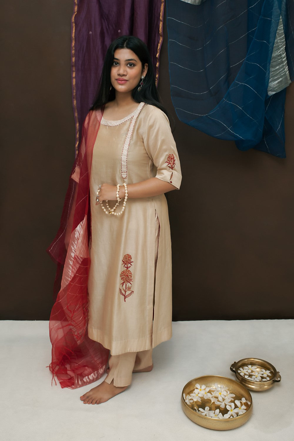 • Fabric: Chanderi silk, Handloom textured silk cotton, Organza, and Satin