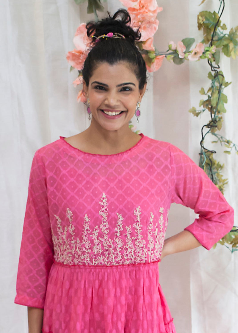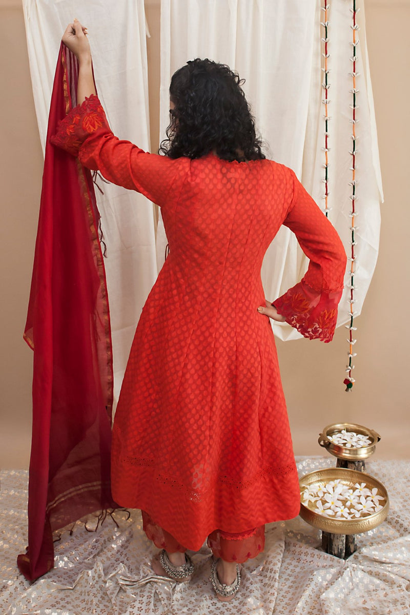 24 Panelled Anarkali with churidar & dupatta- Aubergine