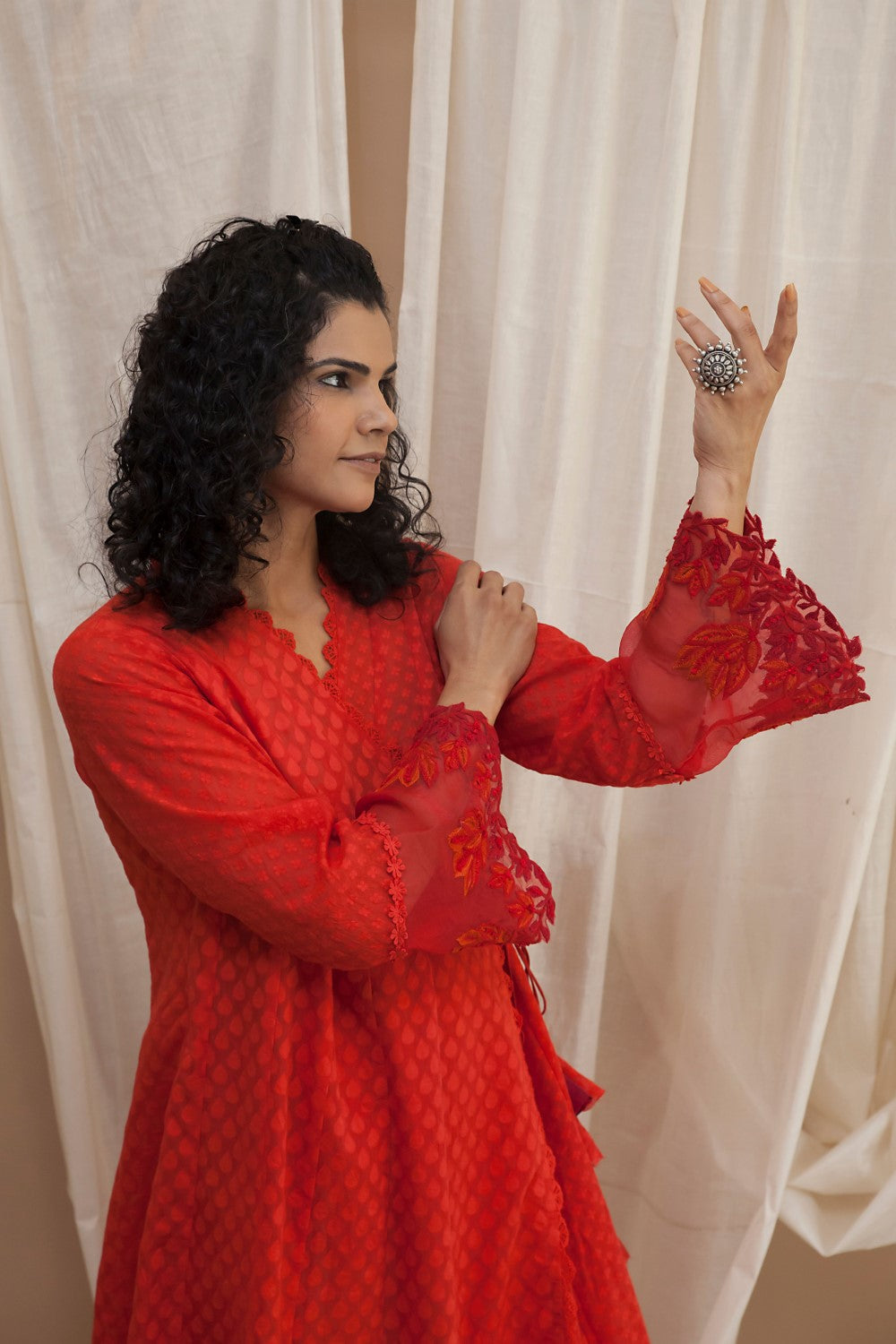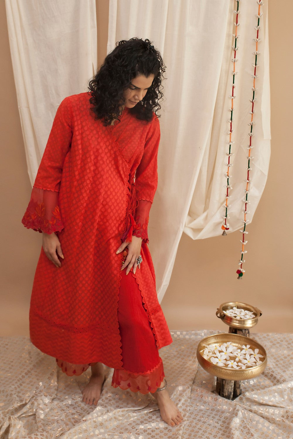 This traditional and flowy Angrakha is perfect for any occasion to give you a classy and elegant look. It can be easily dressed up or down.