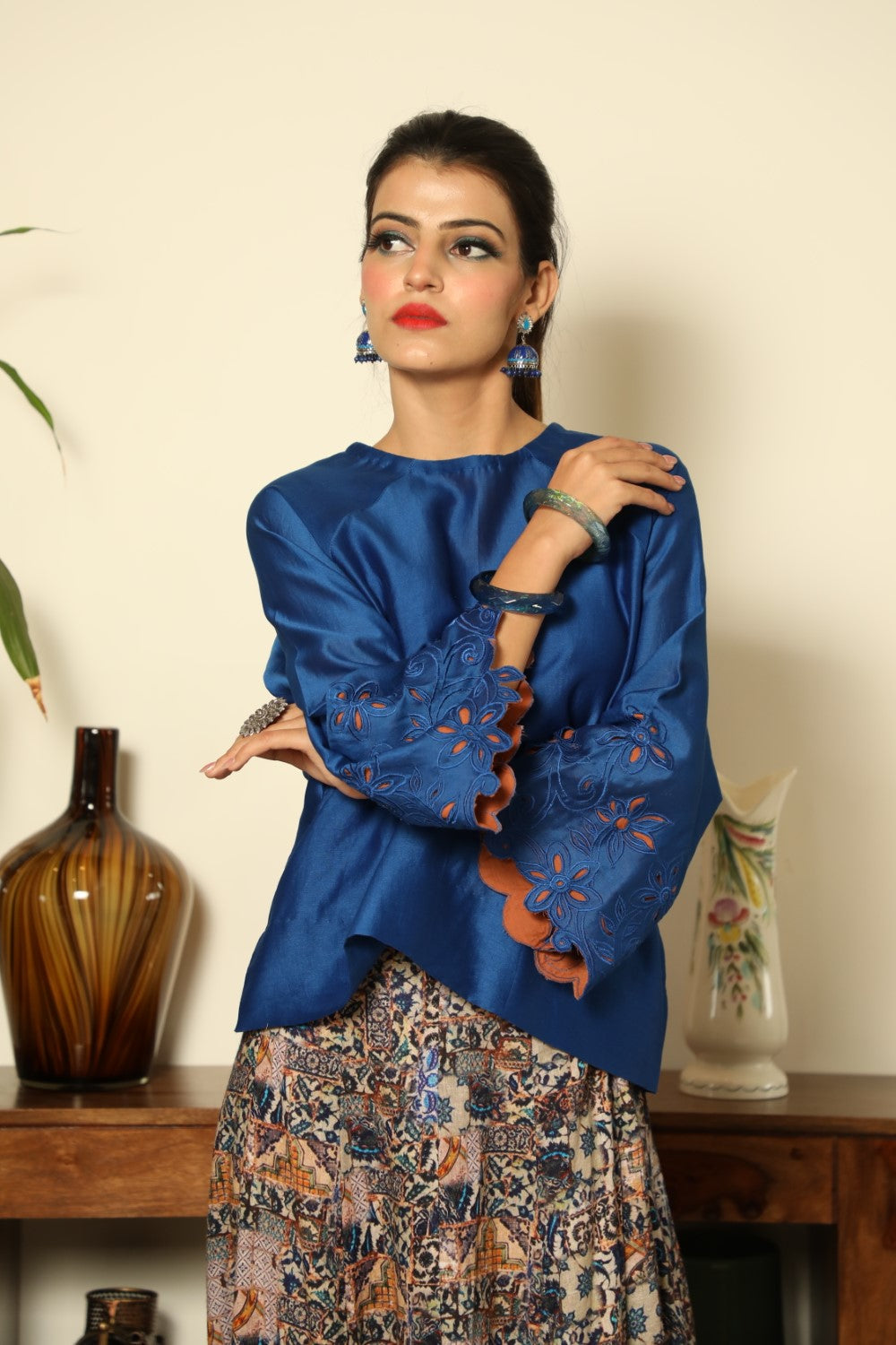 Elevate your wardrobe with the exquisite Spinel top, meticulously crafted from premium handloom chanderi silk. Stand out with its striking colour and intricate Daraz embroidery, making it an ideal choice for both small events and festive occasions. Embrace versatility by dressing it up with your favourite saree, denim, or our chic Tourmaline skirt for a touch of timeless elegance.